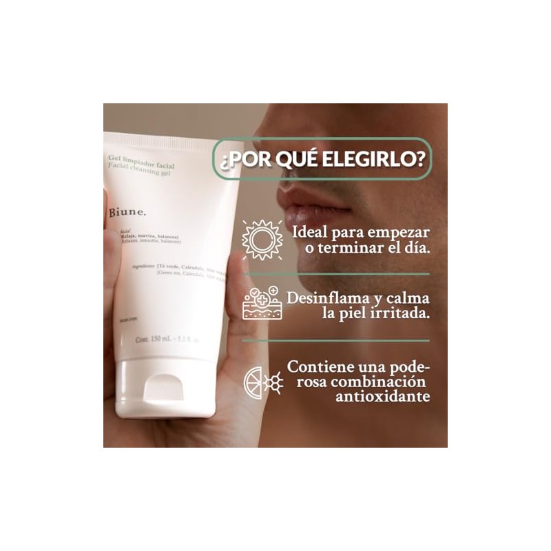 🌟 💄 Limpiador Facial en Gel | Con Té Verde, Aloe Vera, Caléndula y Naranja | Uso Diario - No Afecta la Barrera Natural | Limpieza Profunda para Todo Tipo de Piel | Skin Care | Biune. | 150 ml 💄 🌟