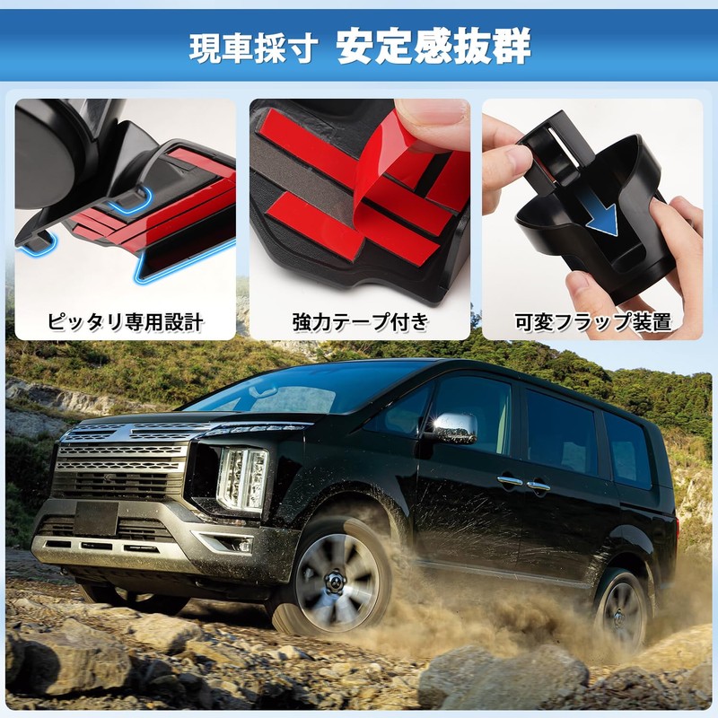 - 3. Abrasion Resistant, Heat Resistant & No Rattling Sound: 1 x Delica D5 drink holder unit, 1 x base. Made of non-toxic and odorless ABS material, it has excellent abrasion and heat resistance, and will not deform even in high temperatures. In addition, it prevents it from rolling and shifting due to vibration during driving, and it does not have noise