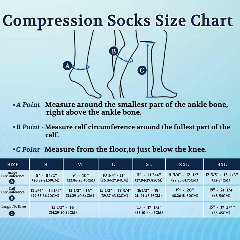 - Perfect fit: Please choose the right size by referring to the recommendations in size chart. For example, ankle circumference, calf circumference, length to knee. Not shoe size. Comes with Easy-to-wear foot slider accessory to help you slip on your socks easily.