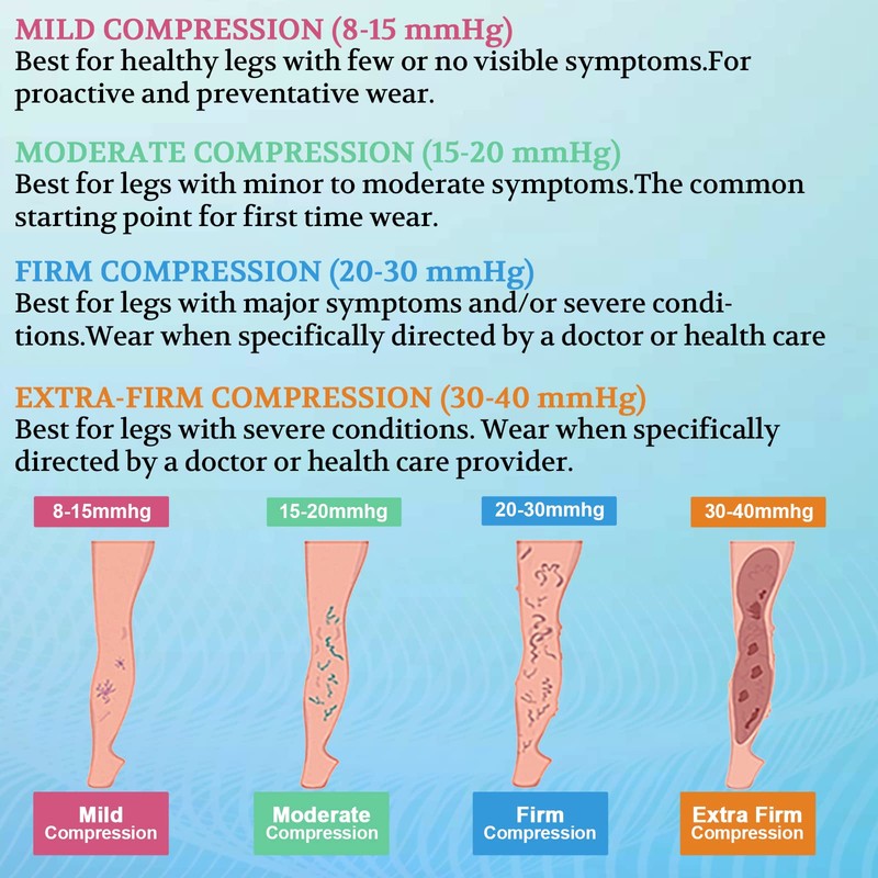 - Recommended for: Pronounced Varicose Veins, Spider Veins, Edema, DVT, Post-Surgery, Swelling in Ankles Calf Feet, Enlarged Bulging Veins, Pregnant Nursing Expecting Mothers (when indicated by a doctor), Travel (prevents blood pooling and clots in frequent flyers), Tired Aching Heavy Legs, Muscle Recovery Post Cardio Workout and Exercise.