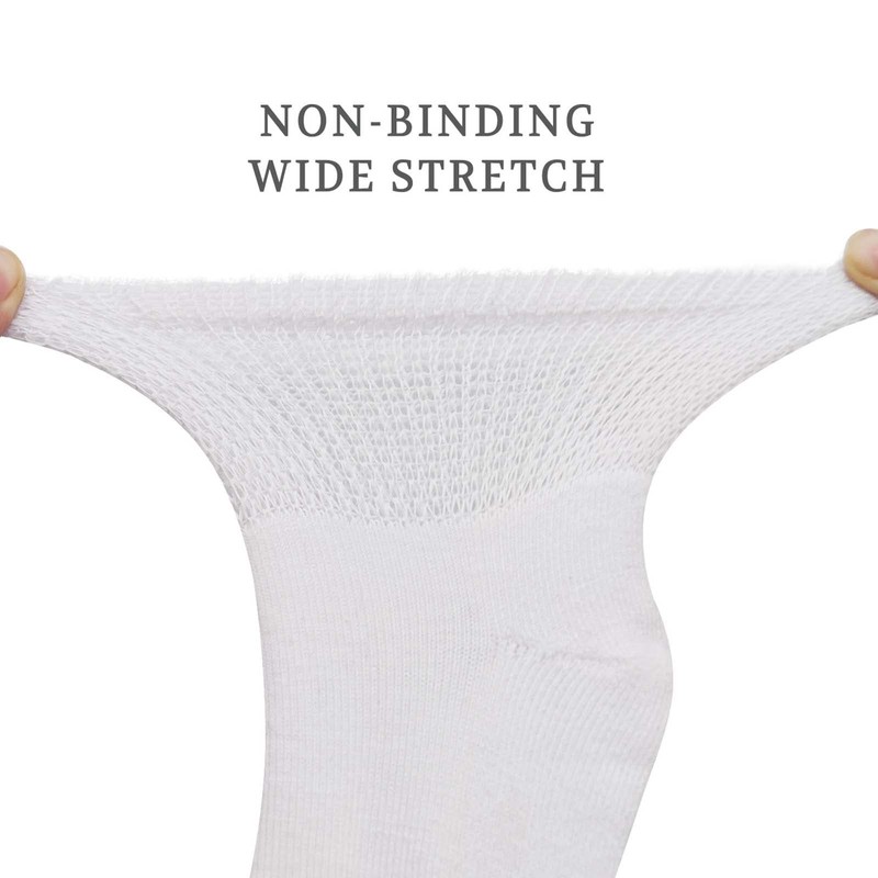 - Non-binding Top: Wide stretchable tops with large opening for comfort. Easy to wear. Socks stays up and not sag yet without constricting blood flow.