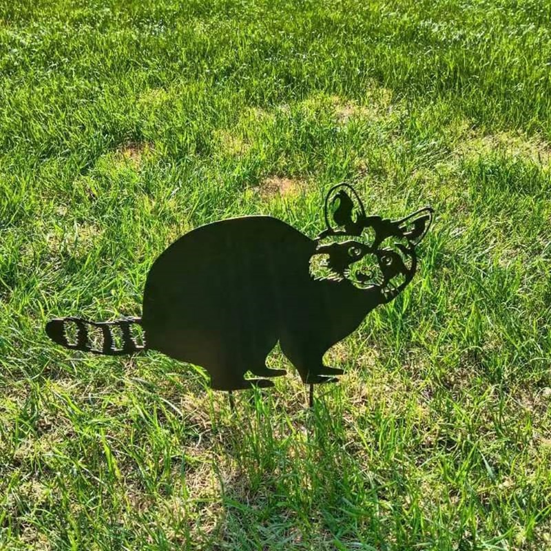 - CUTE GARDEN DECOR The decorative raccoon garden stakes are crafted by our designers and are inspired by the animal elements of nature - raccoons. Cute raccoons are perfect for decorating gardens, patios, outdoor areas, backyards, walkways, paths and anywhere you want to bring life and fun to your environment.
