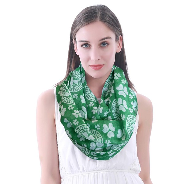 Lina & Lily St Patricks Day Irish Clover Women's Loop Scarf Tube Scarf, green, white