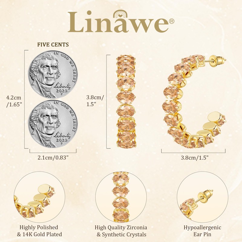 - High Quality Made: The ear pins are stainless steel, hypoallergenic, perfect for sensitive ears. The 14k gold plated copper material looks very luxurious.