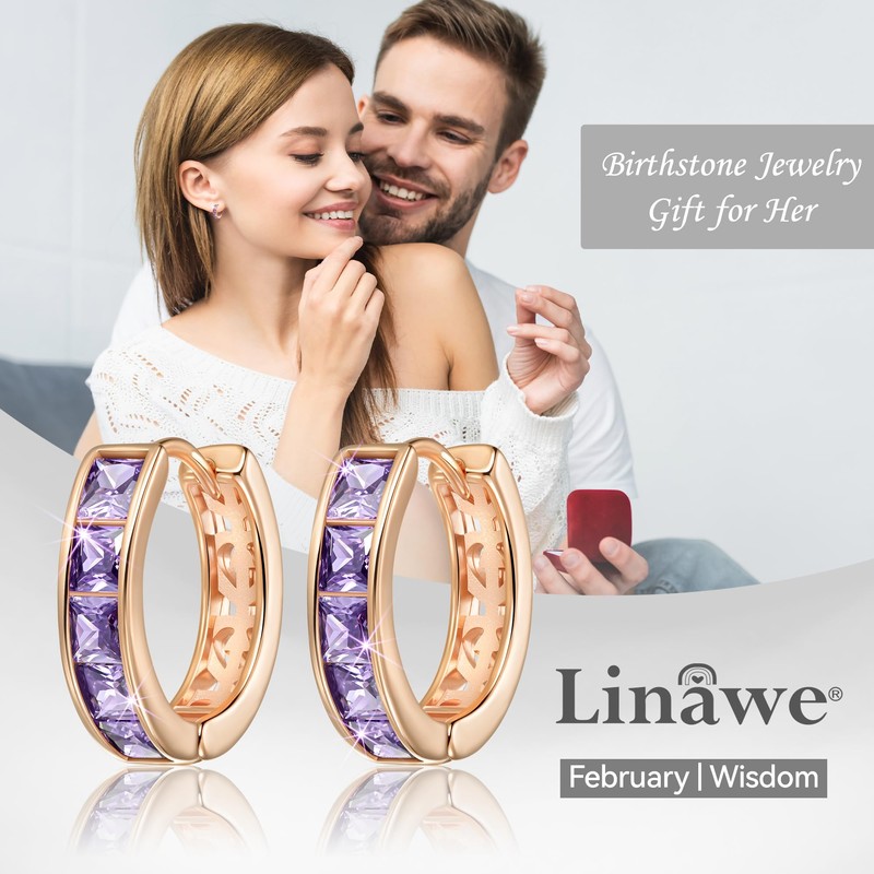 Linawe Hoop Earrings Rose Gold, Purple Earrings for Women Trendy, Amethyst Cubic Zirconia Rhinestone Earrings Studs, Helix Small Hoop Huggie Earrings, Tragus Safety Pin Cartilage