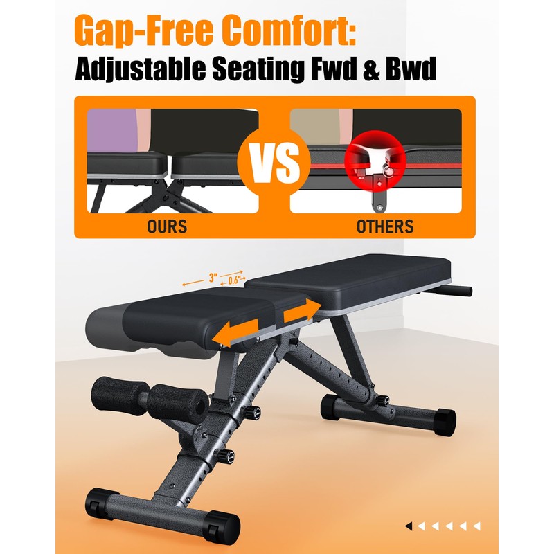 - 2024 PREMIUM EVOLUTION: The versatile adjustable weight bench showcases 10 backrest and 7 seat adjustments, embracing negative angles, to fulfill every fitness aspiration. The revamped 90° upright backrest unlocks a world of training possibilities, while the seamless seat-to-back integration guarantees unparalleled comfort. Standard amenities like swift folding and wheels enhance portability, making this upgrade an essential for fitness aficionados!
