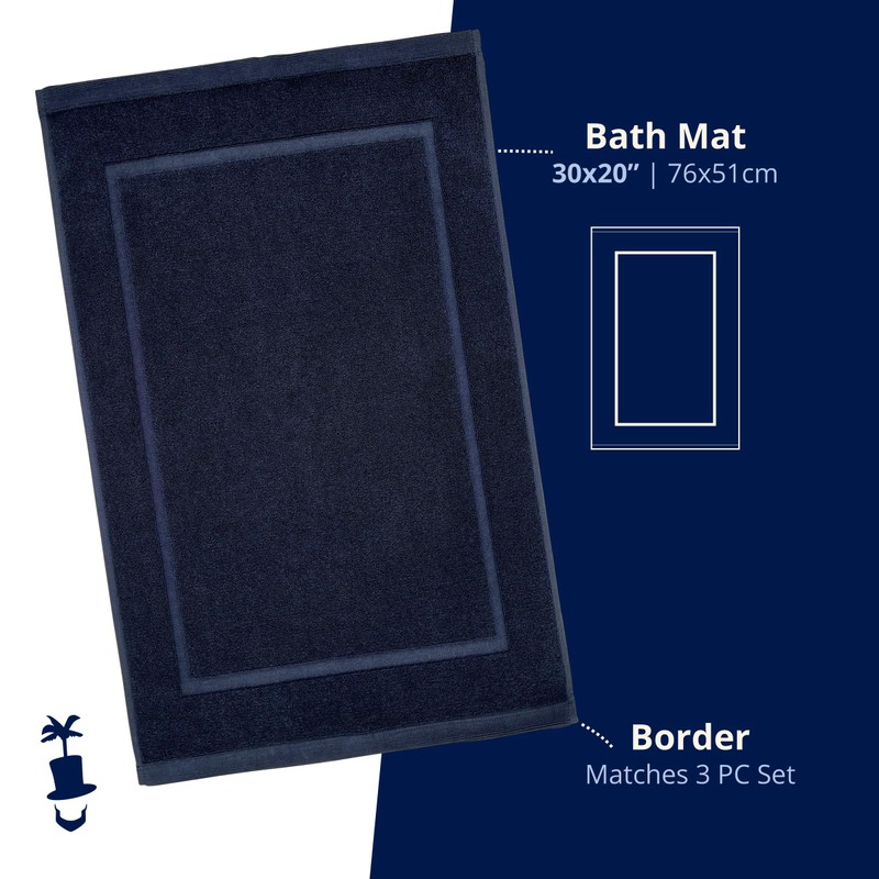 Lincoln & Palm 1-Piece Turkish Cotton Bath Mat - Soft, Plush, and Absorbent - 1000 GSM Thick Luxury Spa and Hotel Quality - Silver-Infused SILVERbac (1 Piece Bath Mat, Navy)