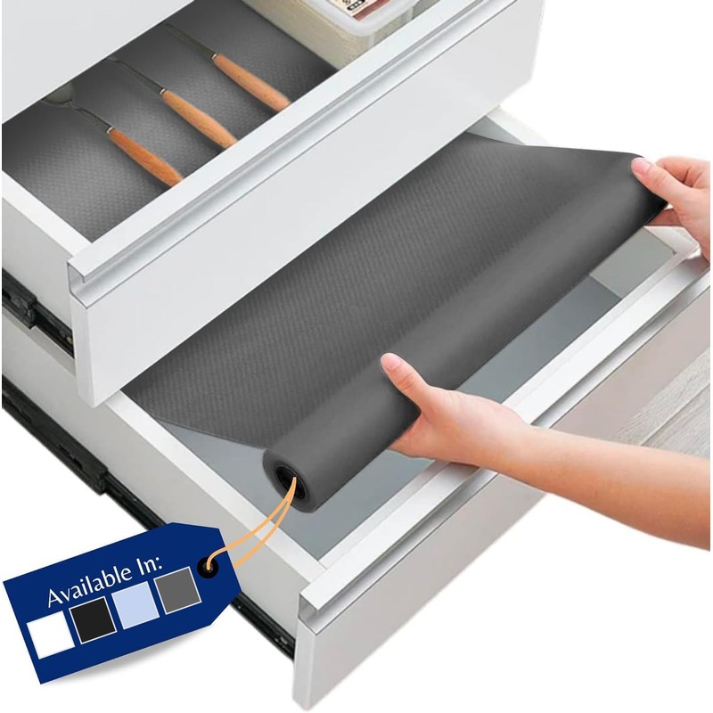 - KEEP YOUR DRAWERS CLEAN: Shield your surfaces with our kitchen drawer liner, a must-have fridge accessory to guard against spills. It keeps drawers and fridge shelves pristine—preventing stuck-on messes and saving you time and effort on cleaning. Easily used as cupboard liners or fridge mats for shelves, it’s the multi-purpose solution every home needs