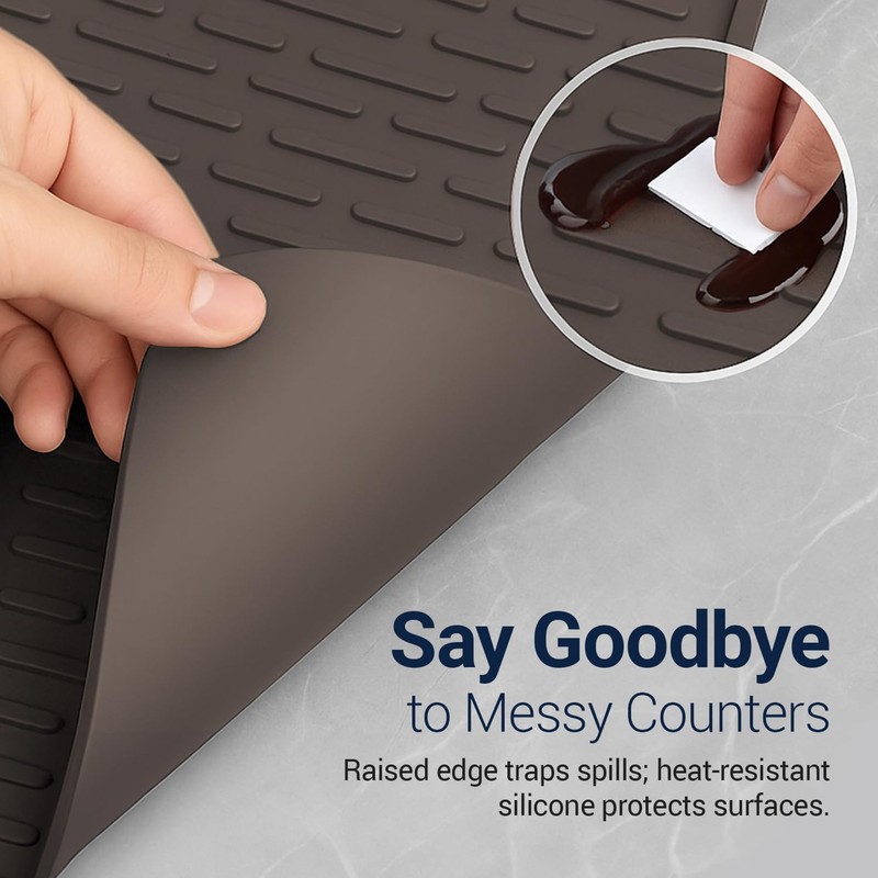 - THE ULTIMATE COFFEE COUNTER UPGRADE: Turn any space into a barista-style setup. Our 24" x 16" silicone coffee matt for counter offers ample space for your coffee station accessories, grinder, and coffee machine - reducing countertop clutter and keeping everything in one place while protecting your surfaces from spills and scratches