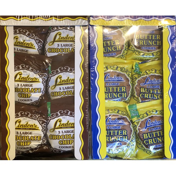 Linden's Variety Bundle, Butter Crunch + Chocolate Chip Cookies, 3 Cookies Per Pack, 2 18 Packs