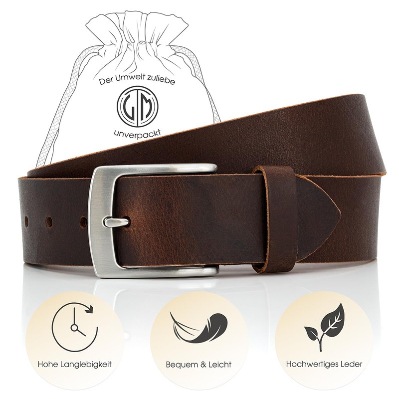 Lindenmann men's leather belt, full cowhide leather, buffalo leather 4 mm, dark brown. - dark brown, size: 95