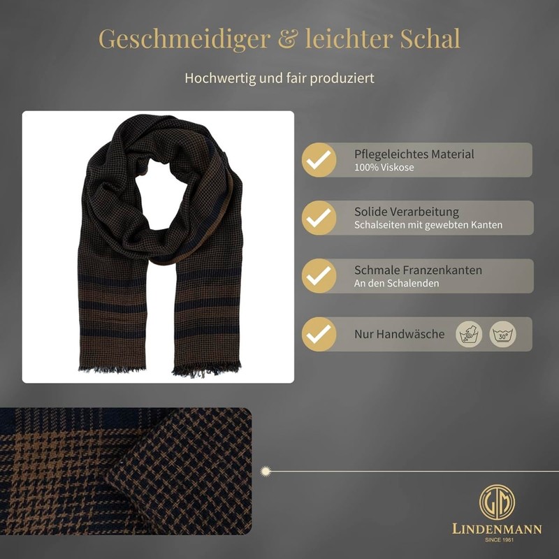 LINDENMANN Men's Scarf Black Beige Men's Scarf Thin 100% Viscose, beige