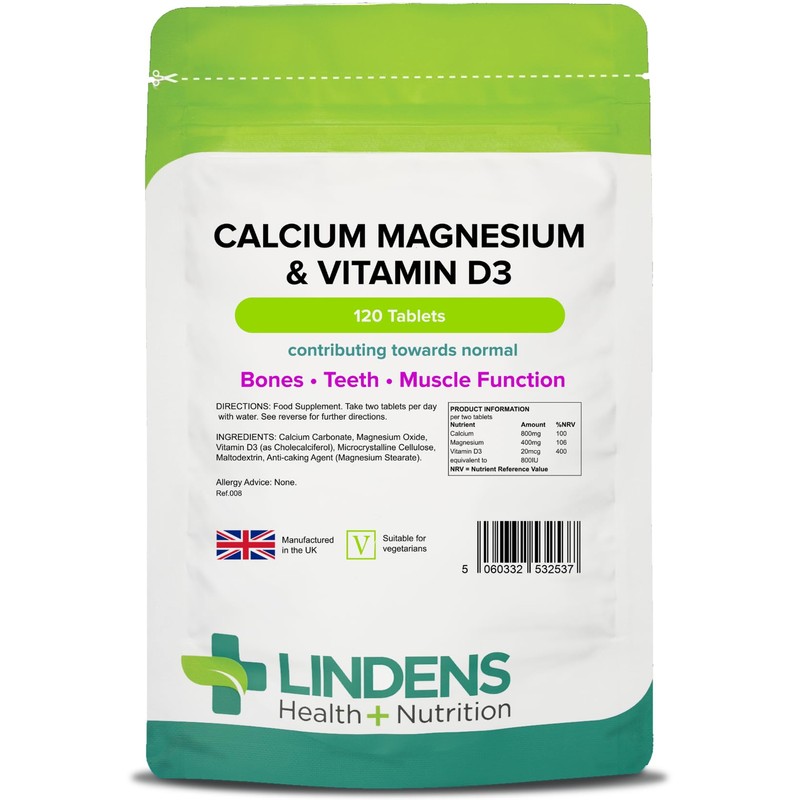 Lindens - Calcium Magnesium & Vitamin D - 120 Tablets - UK Made - Contributes to Normal Bone, Teeth, Muscle & Immune Function, Reduce Tiredness & Fatigue - Letterbox Friendly