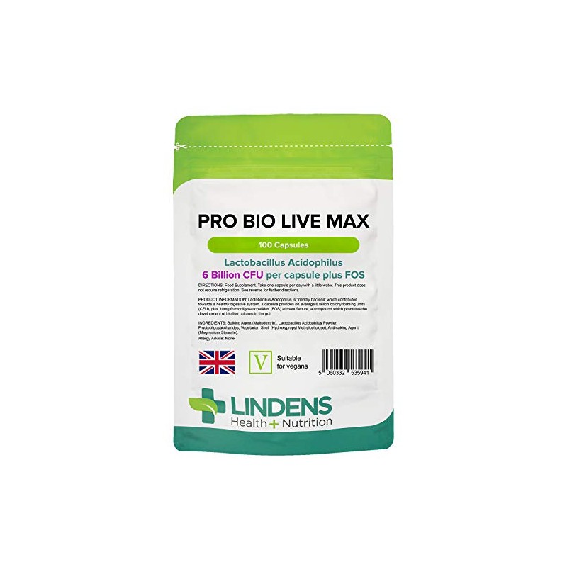 Lindens Pro Bio Live Max 6 Billion CFU Capsules - 100 Pack - Contributes to a Healthy Gut and Supports Digestion - Probiotic Vegetarian Capsules - UK Manufacturer, Letterbox Friendly