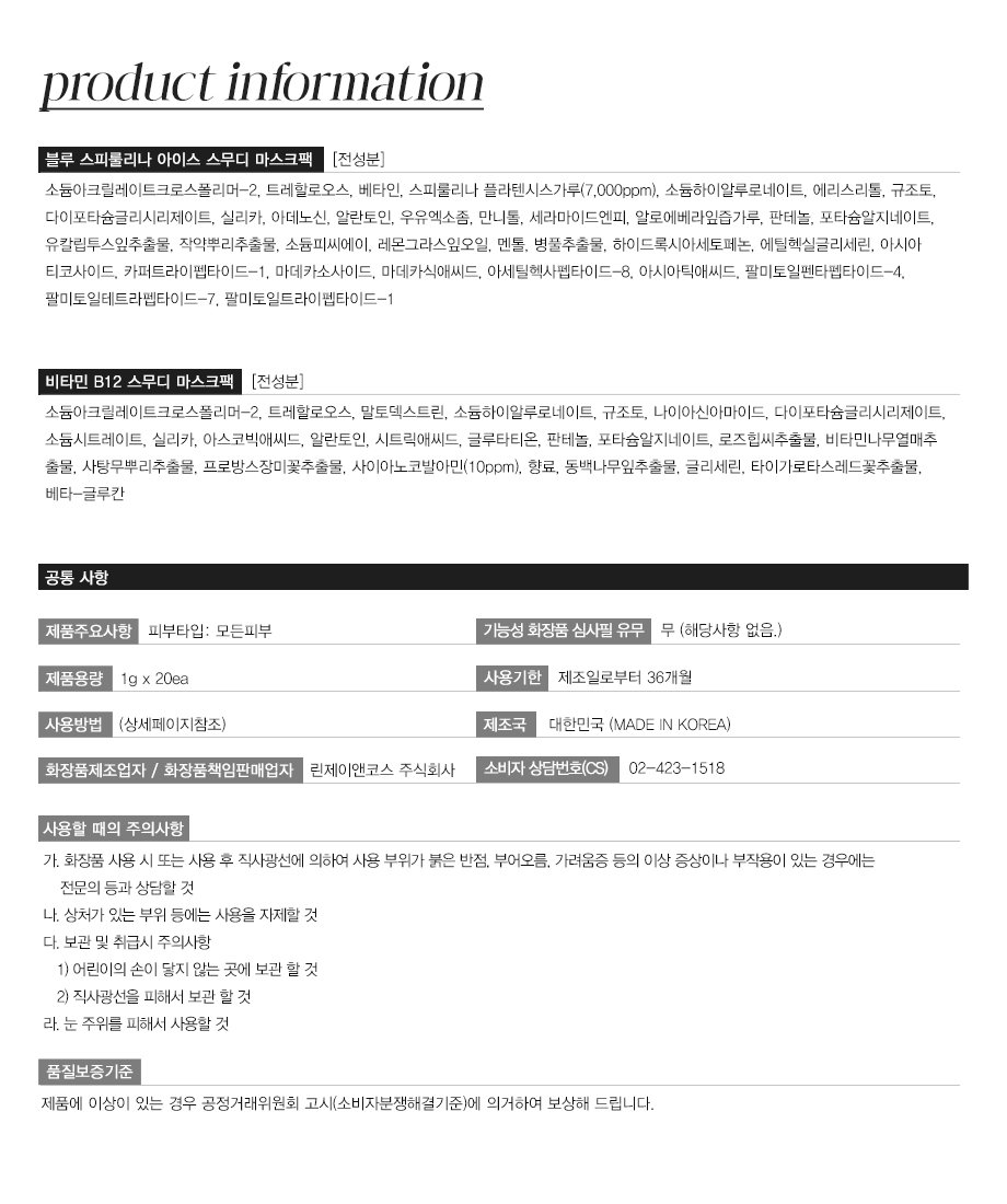 린제이 블루 스피룰리나 아이스 스무디 마스크 (1g x 20매)