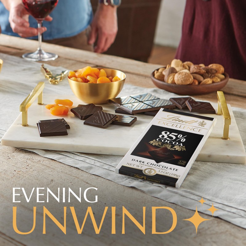 Dive into the refined richness of Lindt EXCELLENCE 85% Cocoa with all your senses. This full-bodied dark chocolate bar is distinguished by a powerful earthiness and notes of dried fruit, spice, and licorice. Whether you prefer to indulge in Lindt EXCELLENCE for baking, as a dark chocolate gift, or paired with your favorite after-dinner drink, the complex flavor and sophisticated texture of our dark chocolate always deliver a gourmet experience. Masterfully crafted with the highest-quality ingredients, Lindt EXCELLENCE is chocolate for the true aficionado.