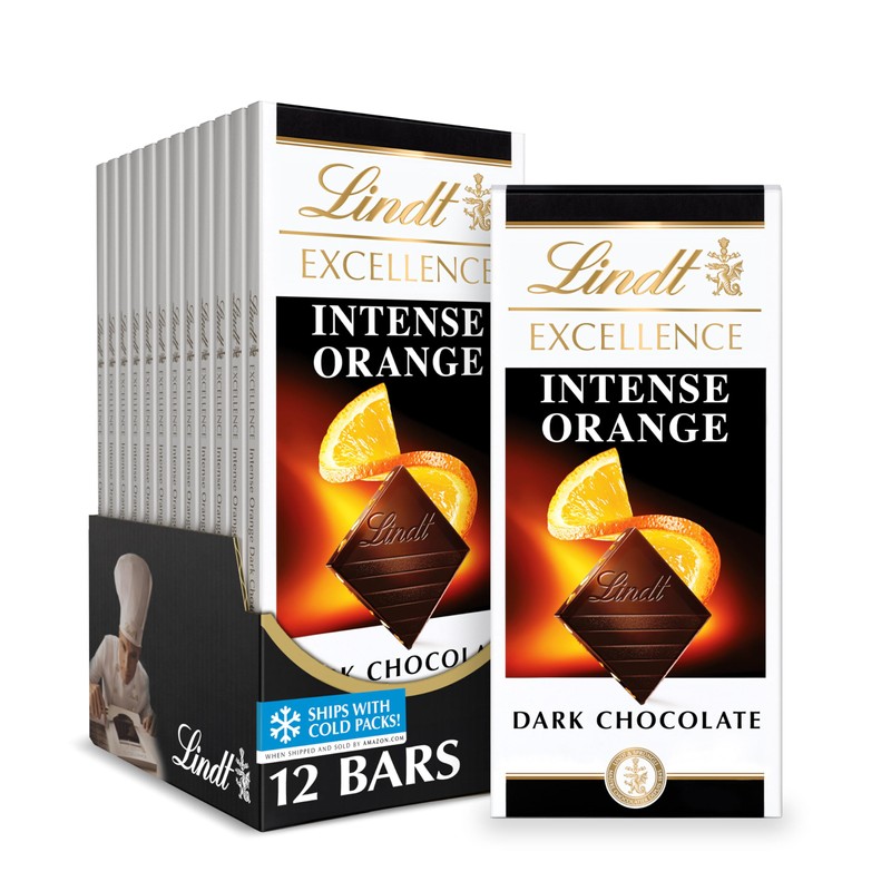- Twelve (12) 3.5 oz. Bar of Lindt EXCELLENCE Intense Orange Dark Chocolate Bar