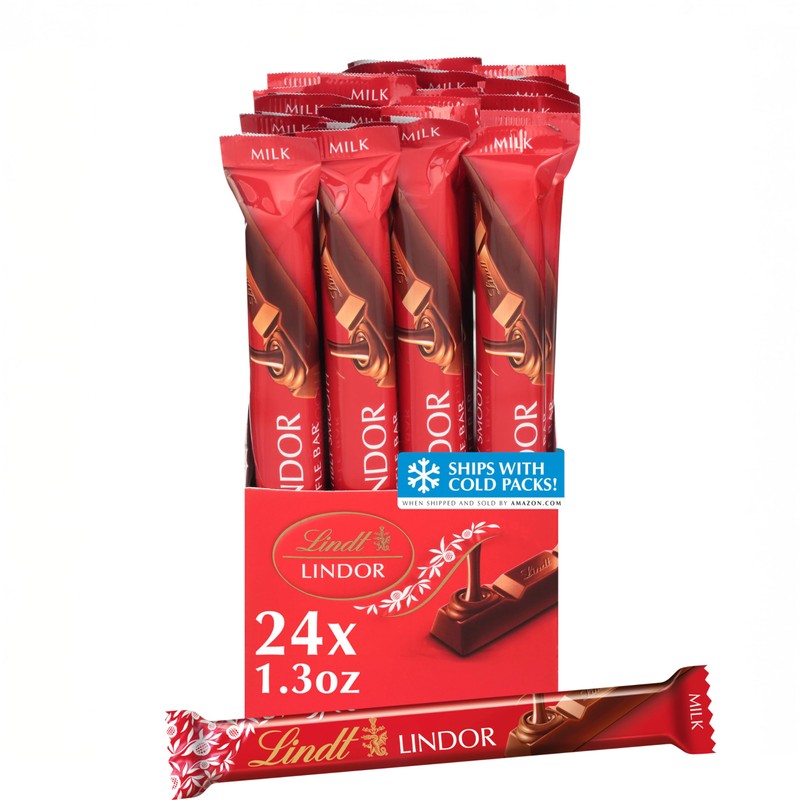 Lindt LINDOR Milk Chocolate Truffle Bar, Chocolate Candy Bar with Smooth Center, 1.3 oz. (24 Pack)