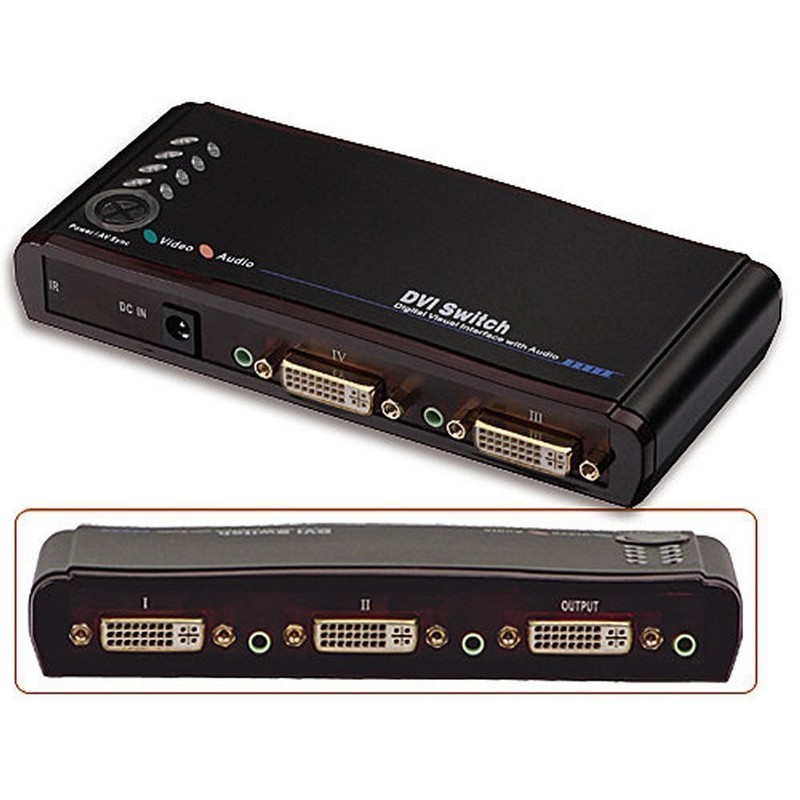 • 4 Port remote control DVID video & audio switch