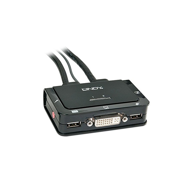 LINDY Compact 2 Port KVM Switch - DVI, USB 2.0 & Audio, Black