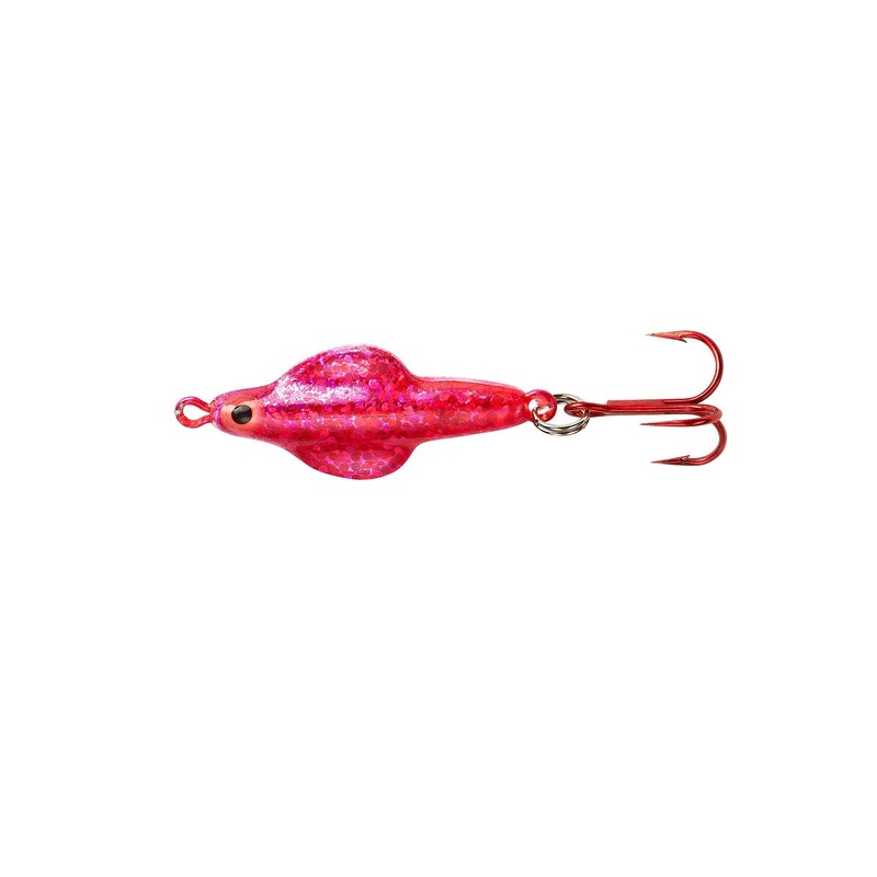 Lindy Rattl'N Flyer Spoon Hybrid Ice Fishing Lure Jigging Spoon, Scarlet Ice, 3/16 oz