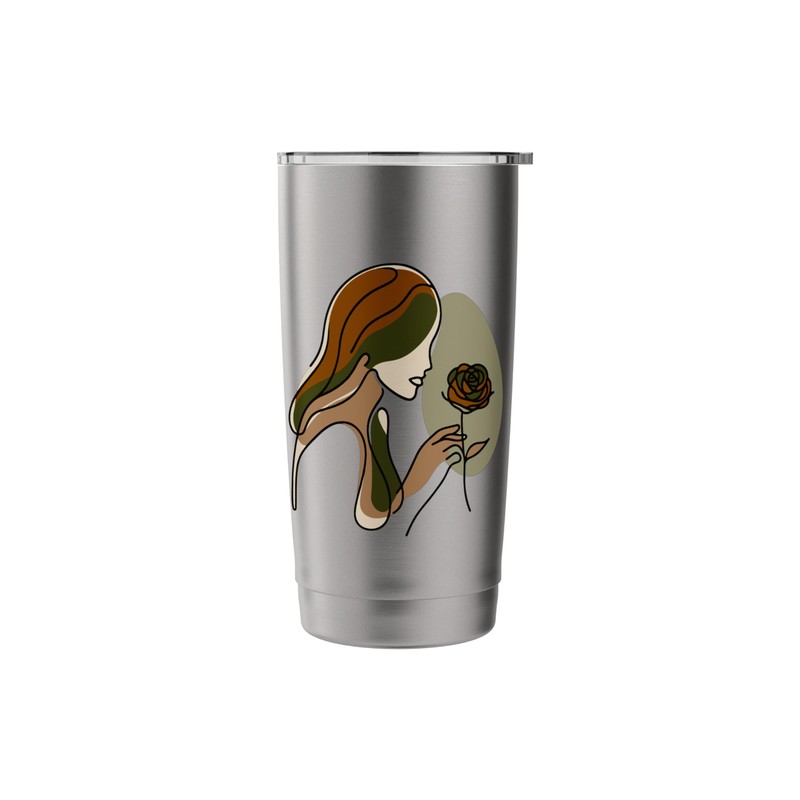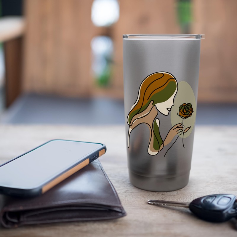 Line Art Abstract Minimalist of Women Face with Rose Flower Stainless Steel Insulated Tumbler