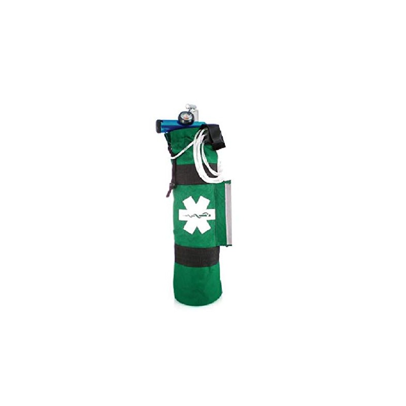 LINE2design Oxygen Cylinder Sleeve Bag - EMS First Responder Emergency Medical Oxygen Bag Portable Travel Size Cylinder Holder with Star of Life Logo - Side Pockets and Adjustable Side Straps - Green