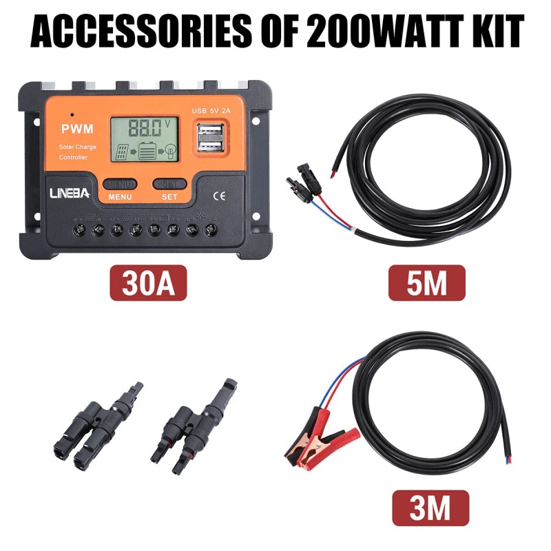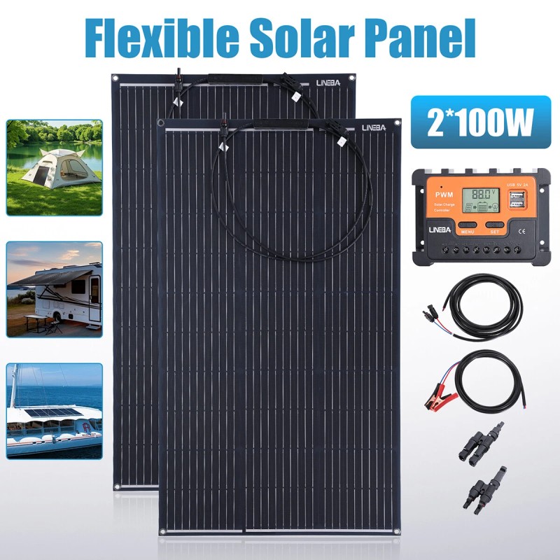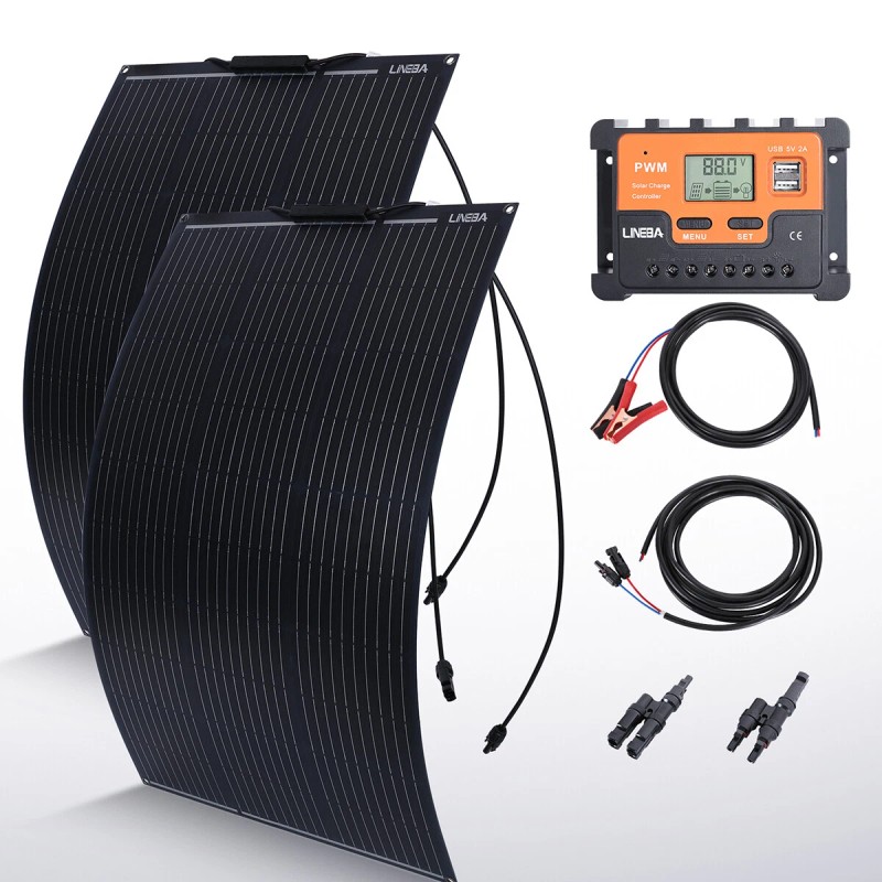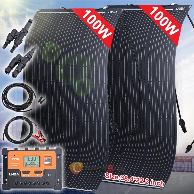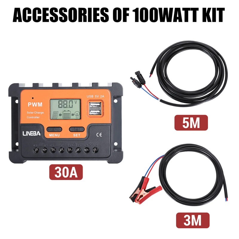 LINEBA 100W 200W 400W Mono Solar Panel Kit Monocrystallin - 100W Solar Panel