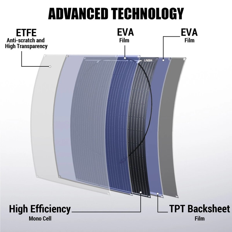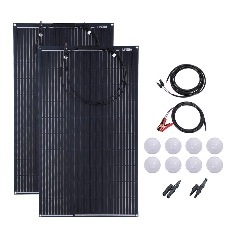 [Strong Versatility] Our solar panels can be used independently or used in series and parallel with multiple solar panels. E.g. 1 flexible solar panel is suitable for 12V system. 2 solar panels in series can be used for a 24V system or 2 boards can be connected in parallel for a 12V system.