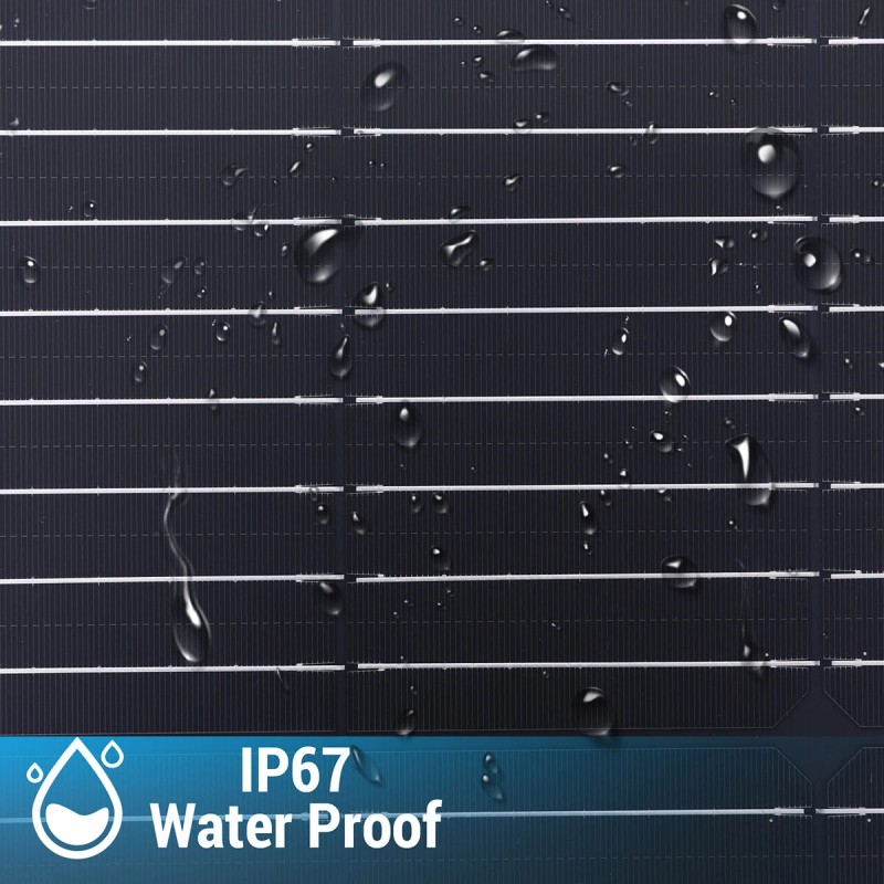 [Safe and Waterproof] Junction box with IP65 protection rating, MC4 connector with IP67 protection rating and waterproof panel to effectively block water splashes are suitable for many weather conditions.