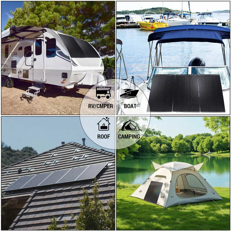[Wide Uses] Applicable to many scenes in daily life, You can install and use solar panels on trailer, RV, boat, cabin, tent, car, truck, yacht, roof. It's one of the best ways to get clean energy when you're outdoors.