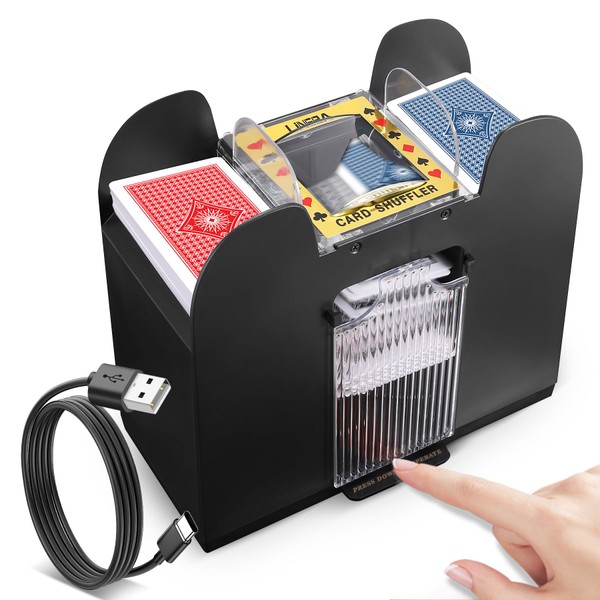 Lineba Card Shuffler for 1-6 Decks Cards, USB Power/Battery Operated Electric Automatic Shuffler Machine, Heavy Duty Playing Card Shufflers for Uno, Skip-Bo, Phase 10, Home Party Card Games