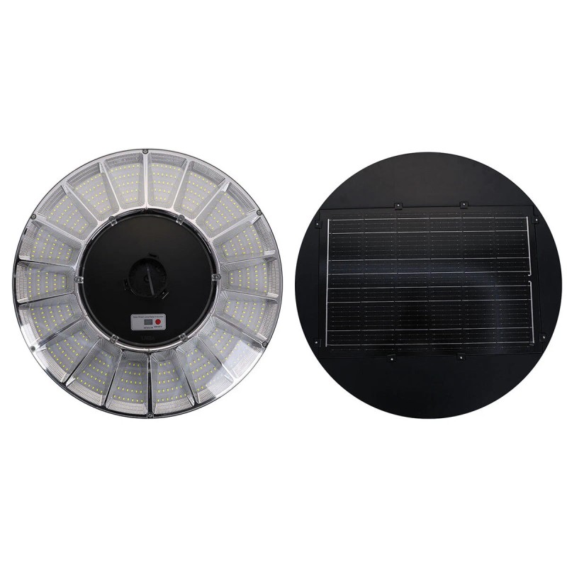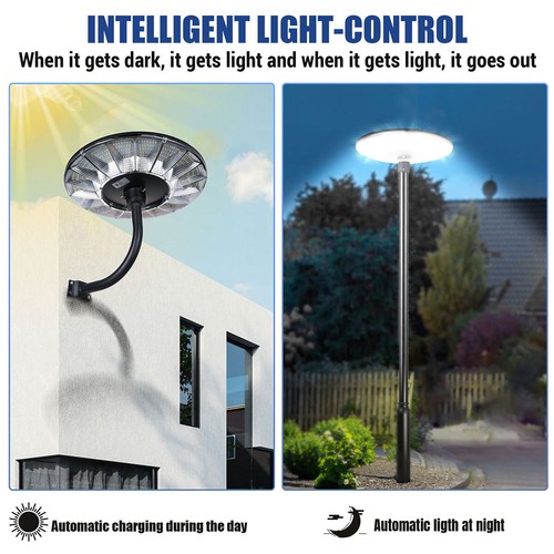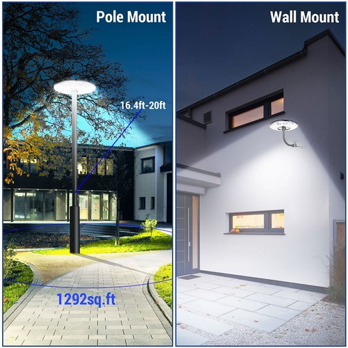 【HIGH BRIGHTNESS & 360 DEGREE WIDE ANGLE LIGHTING 】The solar street light adopts high-efficiency LED beads, the LED beads have large chips and high lumens, brighter than other LED beads. Upgraded 2-way 360-degree wide-angle lighting, compared with ordinary 180° commercial solar lights, the lighting range is wider and brighter.