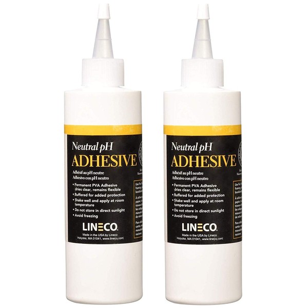 Lineco Neutral pH Adhesive, Acid-Free Dries Clear, PVA Formula Material Dries Quick Water Soluble Flexible When Dried, 8 Ounces, Used for Book Binding and Other Paper Projects (Pack of 2, White)