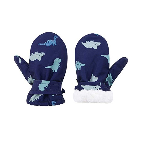 Lined Fleece Toddler Mittens Kids Winter Warm Gloves Child Ski Gloves Waterproof Snow Baby Mitten for Boys Girls Blue Dinosaur M