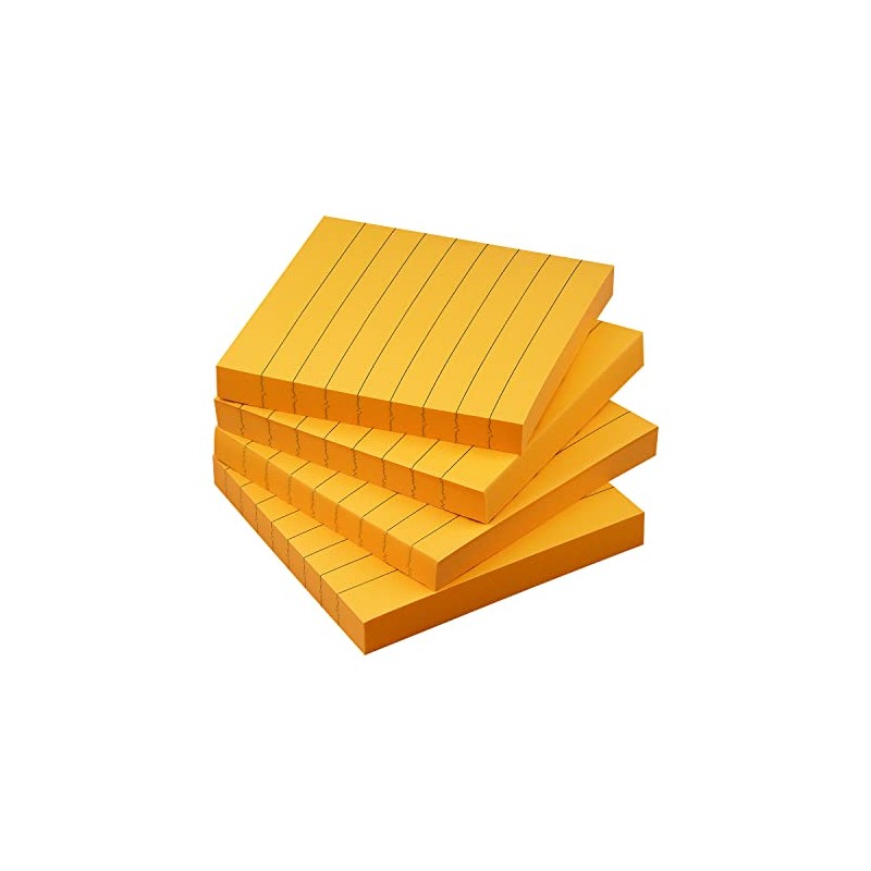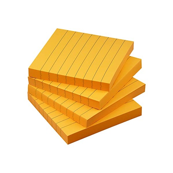 Lined Sticky Notes 3x3 Sticky Notes with Lines Self-Stick Notes Bright Color 4 Pads 90 Sheets/Pad (Orange)
