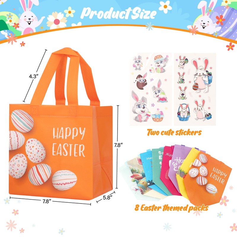 - There are 8 pack different pattern easter bag with 2 easter temperory sticker, beautiful and cute