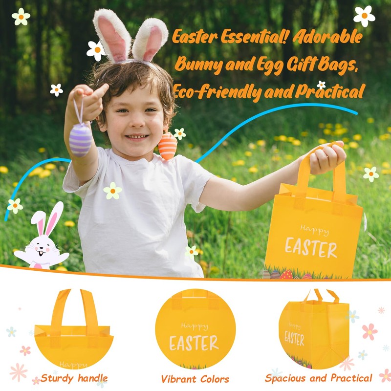 Linelglobal Easter Hunt Bag Happy Easter Non-Woven Bag Reusable Tote Bag for Treat Party Bunny Carrot Chick 8 Pack