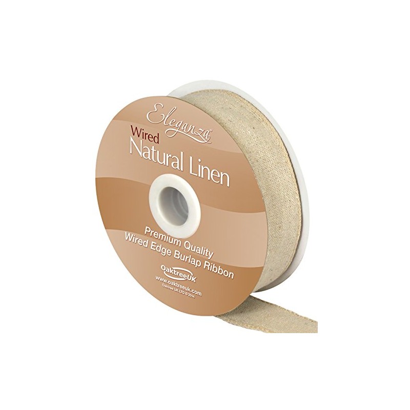 Linen Burlap Natural Wired Edge Eleganza Ribbon 32mm x 1 Metre