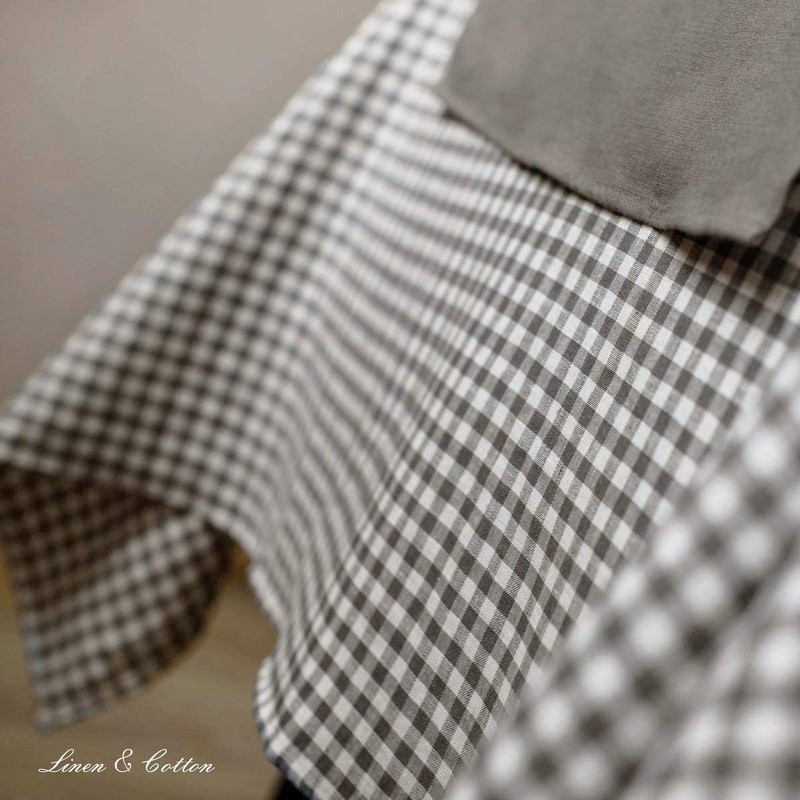 Linen & Cotton Tablecloth Table Linen Checked Country House Style Estella - 100% Linen, White / Grey (140 x 250 cm) Festive Rectangular Spring / Home Kitchen Restaurant Cafe Hotel Catering