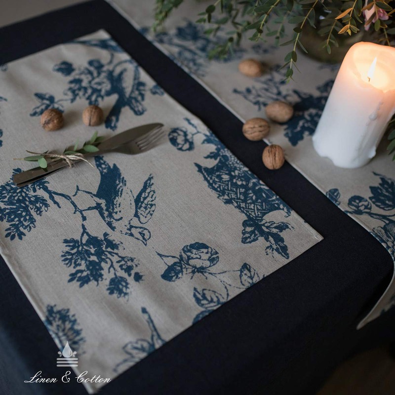 - Linen & Cotton Water and Stain Resistant Table Mats FIORE Ideal for Indoor and Outdoor Use
