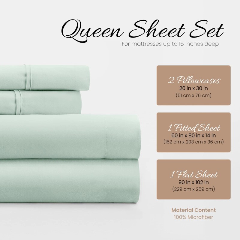 Queen Mint Bed Linen Set Deep Pocket Soft Comfortable Easy Care Durable