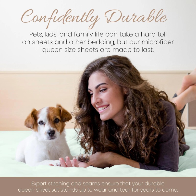 • MADE TO LAST: Pets, kids, and family life can take a hard toll on sheets and other bedding, but our sheets are made to last. Expert stitching and seams ensure that your queen sheet set will stand up to wear and tear for years to come.