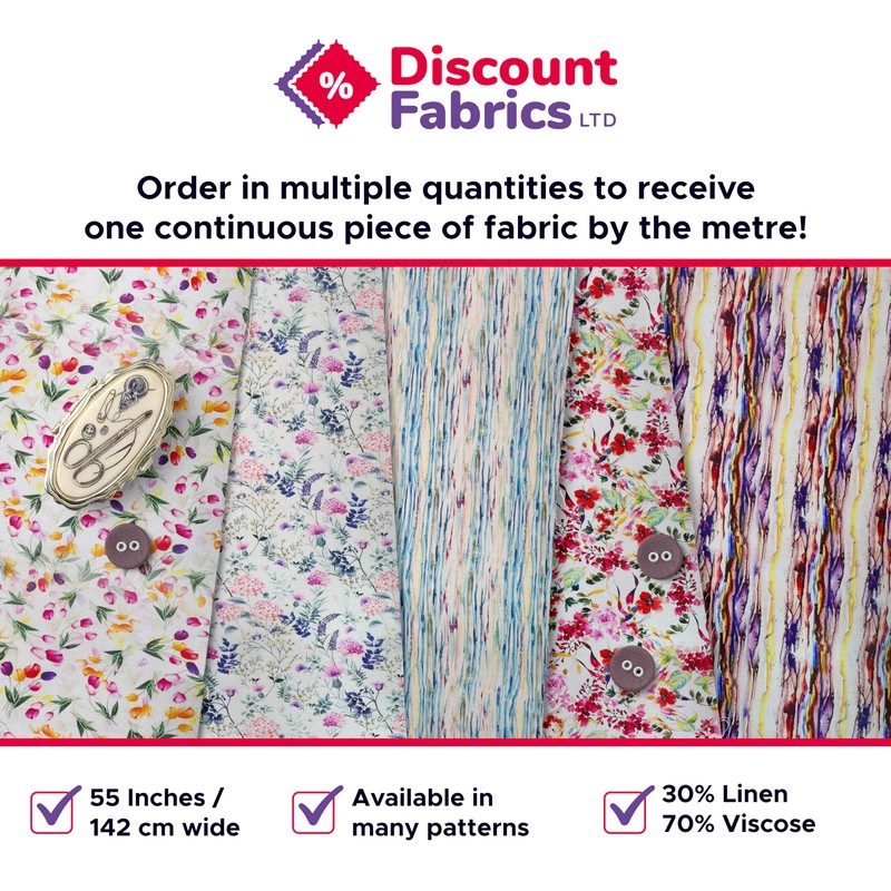 Linen Viscose Printed Fabric - 55 Inches (142cm) Wide - Soft Linen Viscose Blend, Floral Design - Ideal for Dressmaking, Quilting, Crafts by Design Discount Fabric LTD (LVP018-0.5 Metre)