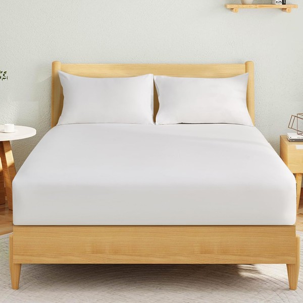 LINENOVA King Single Fitted Sheet Set – 2-Piece Ultra Soft 1800TC Microfiber, Extra Deep Pocket 40cm, 1 Fitted Sheet + 1 Pillowcase - White