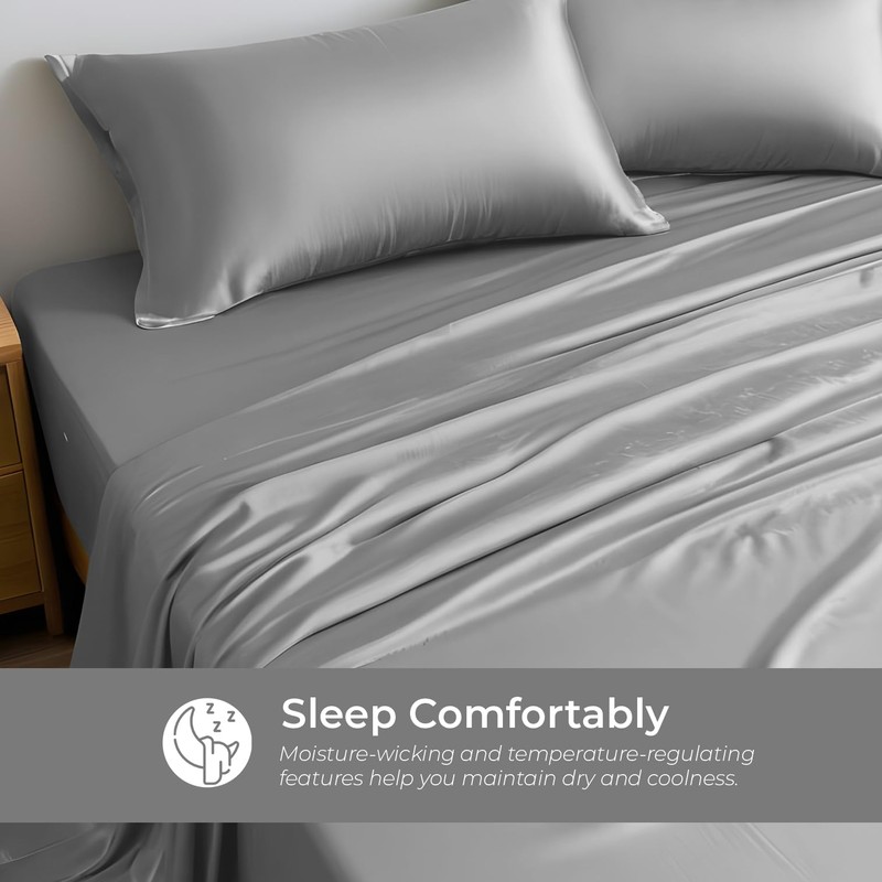 - Keep You Cool: Our luxury Rayon Derived from Bamboo bedding is breathable and lightweight for a cool night's sleep. It's temperature regulating and moisture wicking properties help circulate air flow to fend off excess body heat and promote cooling so you wake up feeling refreshed each morning. Whether it's summer or winter, our sheets thermal-regulating properties help balance your body's temperature as you sleep for maximum comfort.