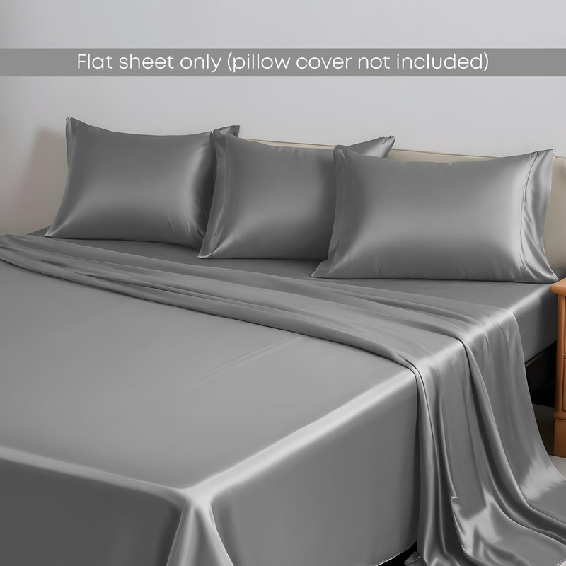 LINENWALAS King Flat Sheet Only - Rayon Derived from Bamboo Silk Bed Sheet, Premium Breathable Cooling Sheet, Soft Top Sheet (King, Light Grey)