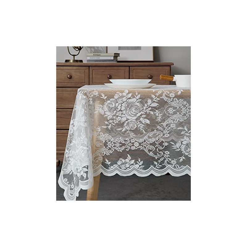 - 🟢 PERFECT RUSTIC DESIGN: 1 Lace Tablecloth with Scalloped Bottom and Vintage English Rose Design.