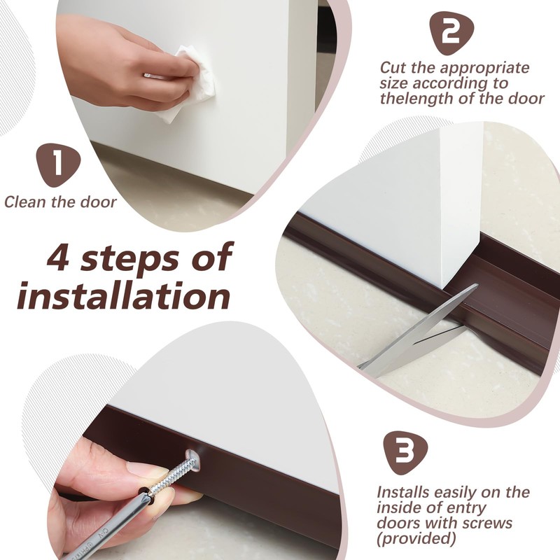 • Effortless Installation: along with all necessary accessories, the package includes screws with painted heads for aesthetic cohesiveness; The holes are pre drilled, you can effortlessly mount the door sweep on the type of door, wooden, metal, or plastic, making it the ideal choice for everyone