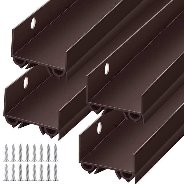 Lineshading 4 Sets Door Sweep Plastic PVC 1 3/4" x 36" Slide on Bottom Exterior Door Seal Strip for Weather Stripping Draft Stopper (Brown)